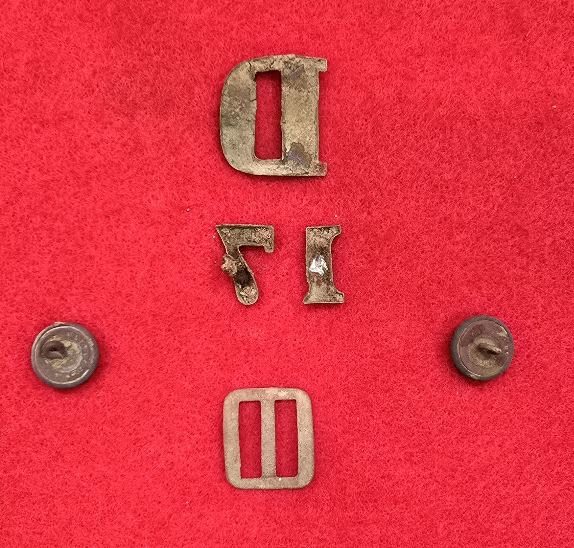What a cool historical item . It's a complete dug Union Kepi. It was dug at the position held by the 71st Ohio Infantry company D on the first day of the battle of Shiloh. This was on private land with permission. This land was recently bought a few years back, by the Civil War Battlefield Trust and can no longer be hunted anymore . I was blessed to have had permission there back in the day . I personally dug this about 30 years ago. All of these items came out of the same hole and is all that is left of a Kepi that has long since decayed away. I will give a detailed map of the location found, to the buyer. Alot of history for the money and with rock solid provenance.