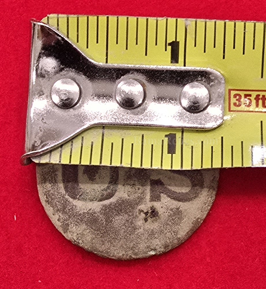 Cool Civil War Period U.S.Marked Brass Bridle Rosette. Has full lead in the back and remnants of the iron attachment hooks. This one is from Northern Virginia. This one measures just shy of 1-1/2" . Very nice Rosette.