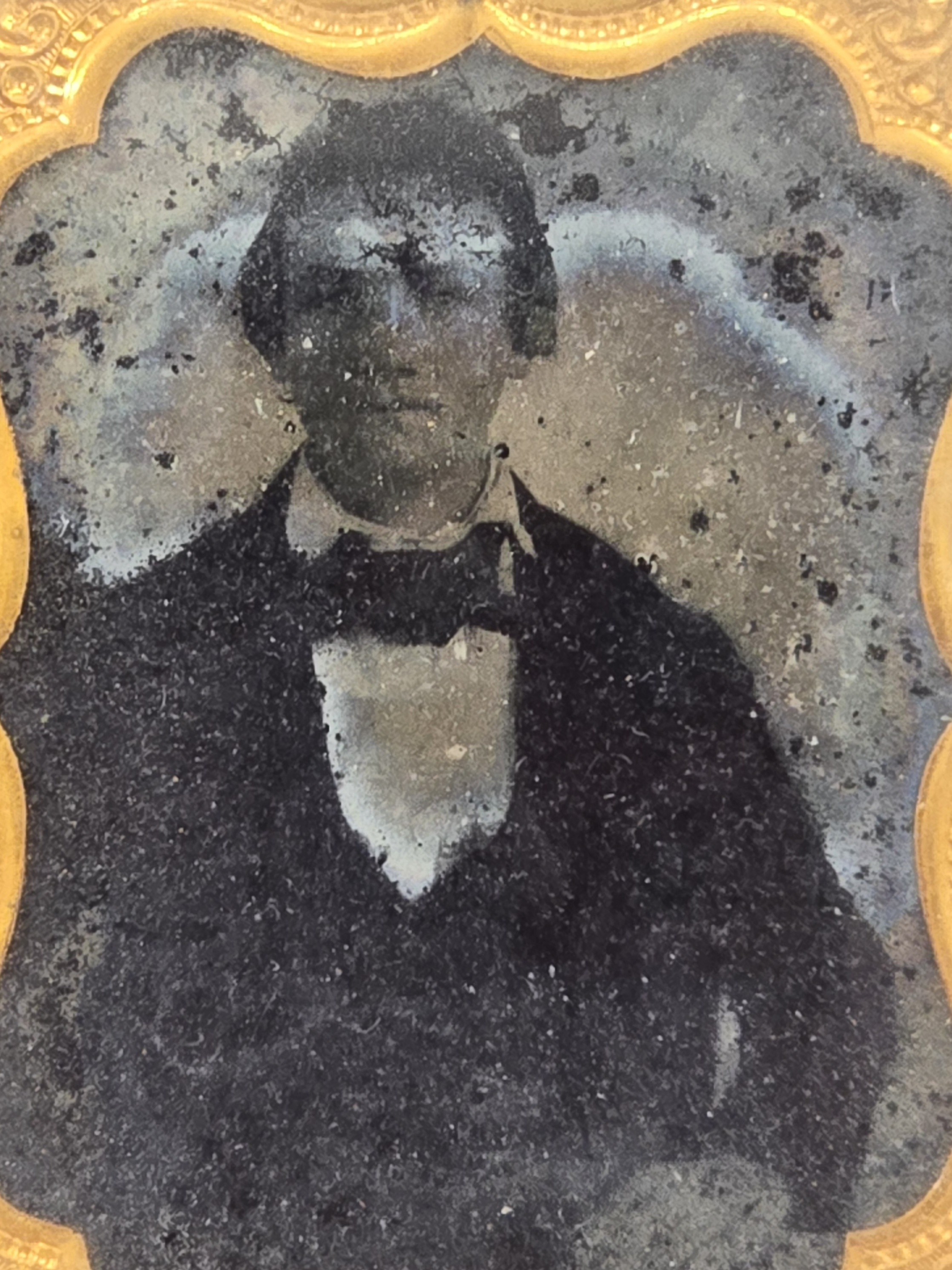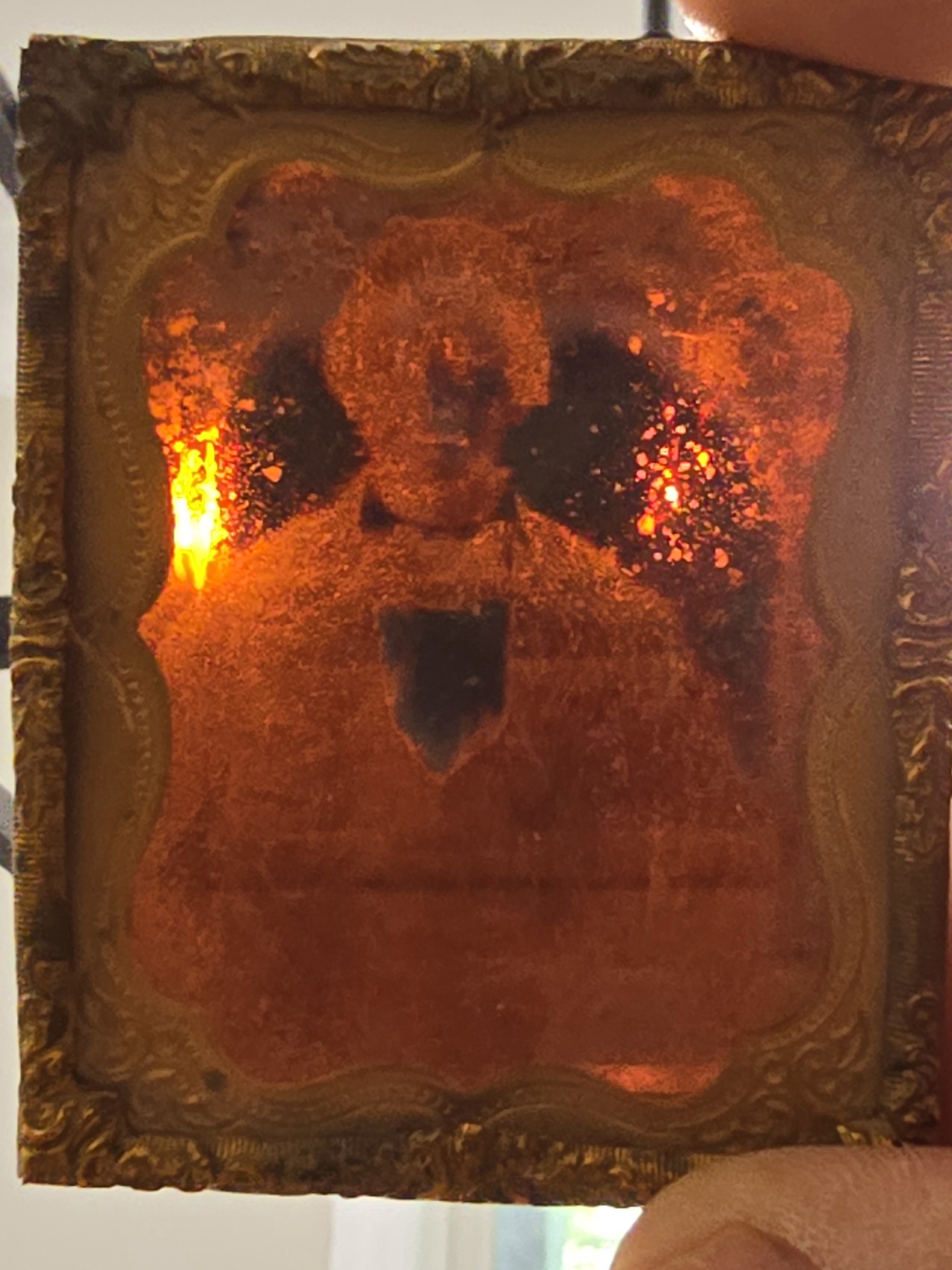 Cool Civil War Period 9th plate Ruby Ambrotype of an Unidentified Young gentleman. It's still in its original gold casing.